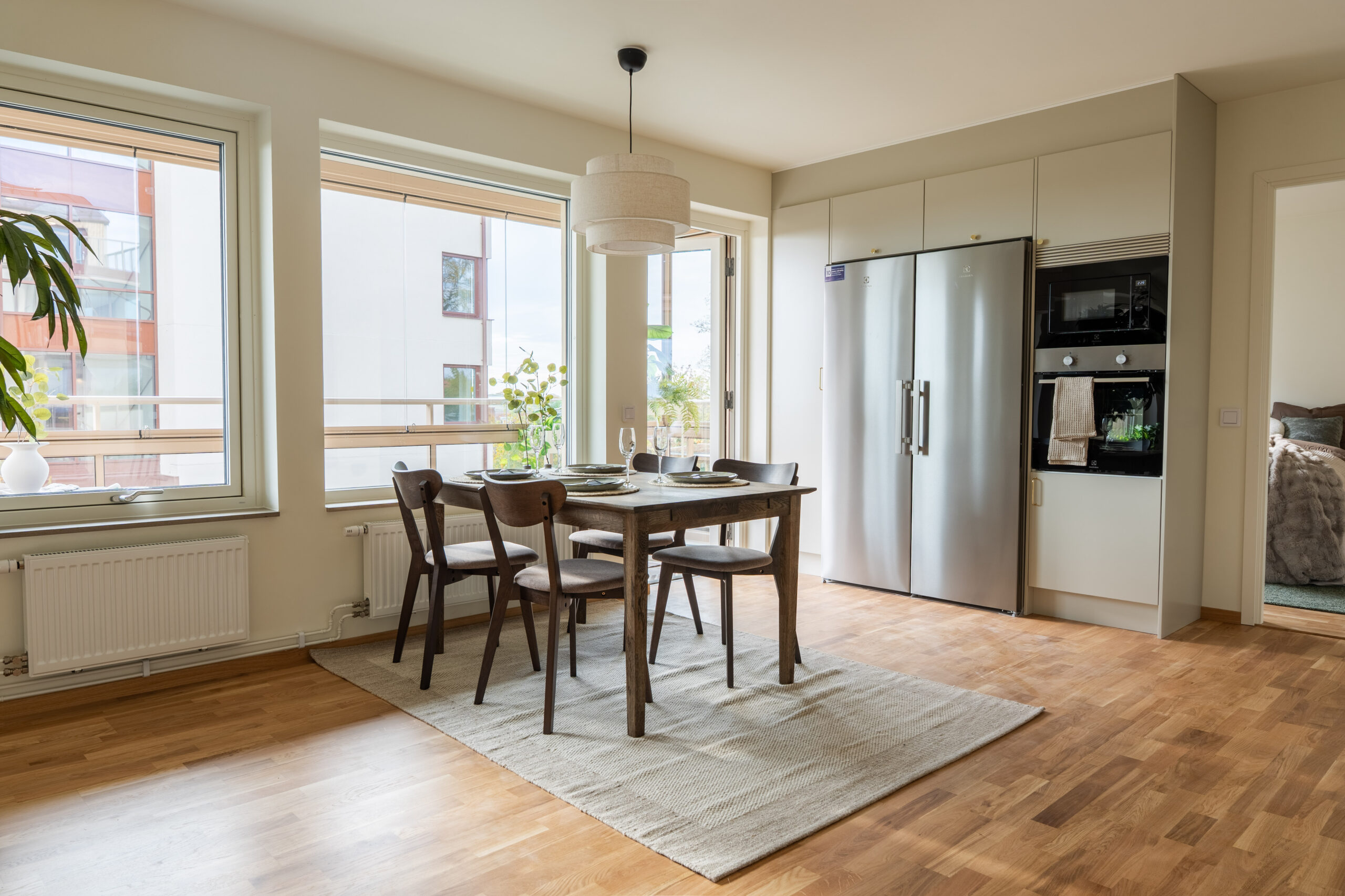 De ljusa, välplanerade lägenheterna har öppna ytor, bra förvaring och modern standard – allt färdigt från start. Här slipper du renoveringar och underhåll, men får istället hiss, grönska utanför dörren och nära till centrum, vård, butiker och tågstation.